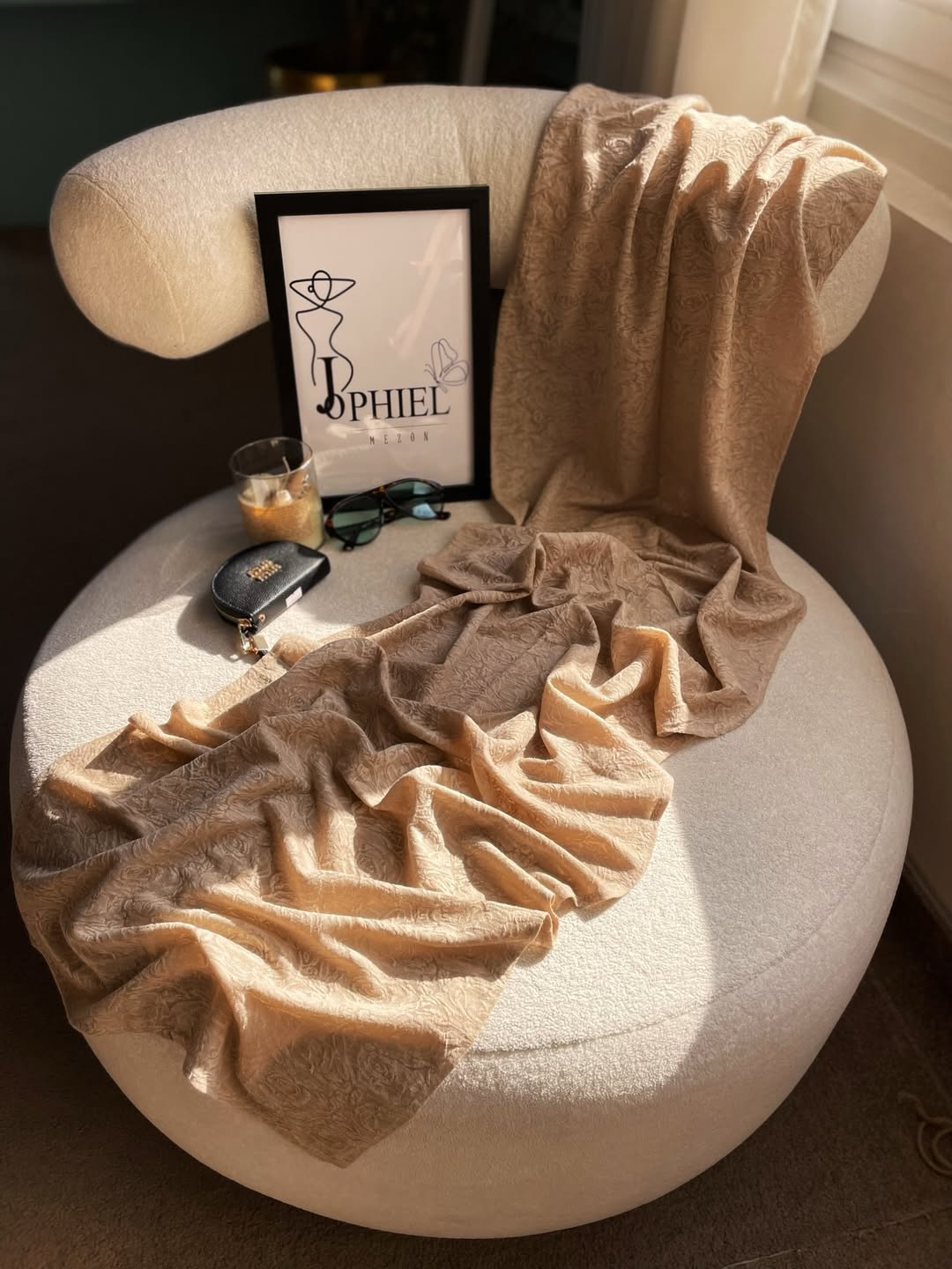 شال مجلسی گوچی وارداتی لبه گیپور سبک نگین کاری شده