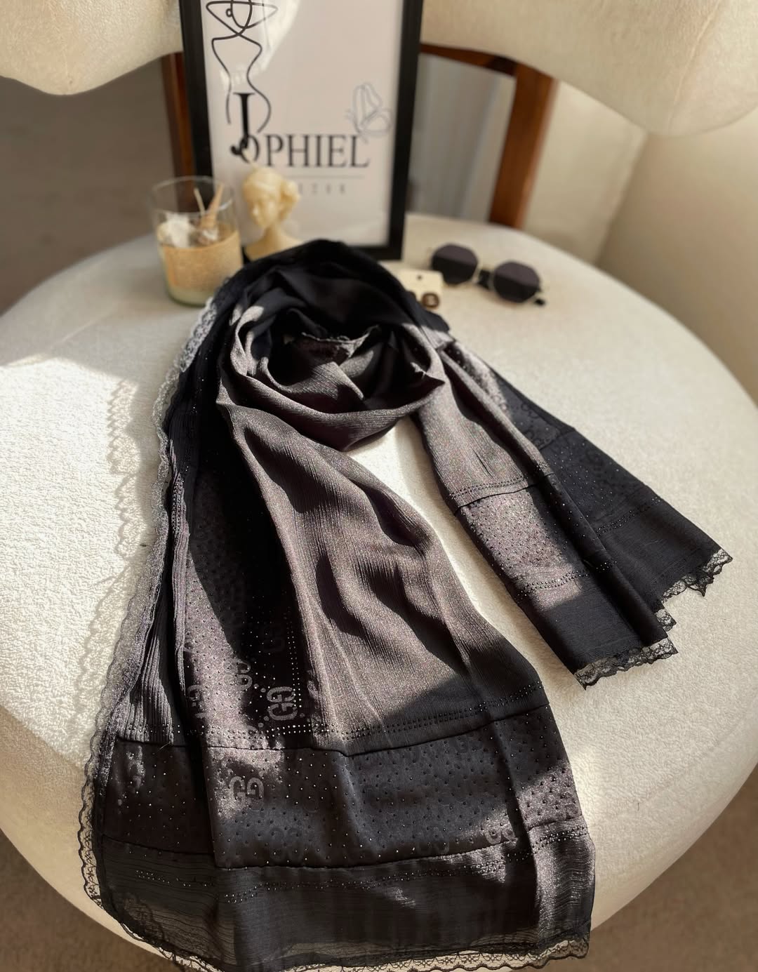 شال مجلسی گوچی وارداتی لبه گیپور سبک نگین کاری شده