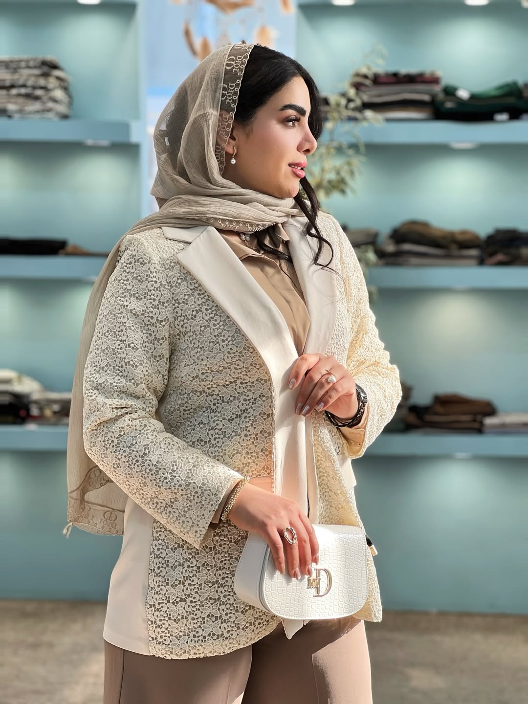 کت مجلسی گیپور جنس پارچه مازراتی کجراه سایز ۴۸