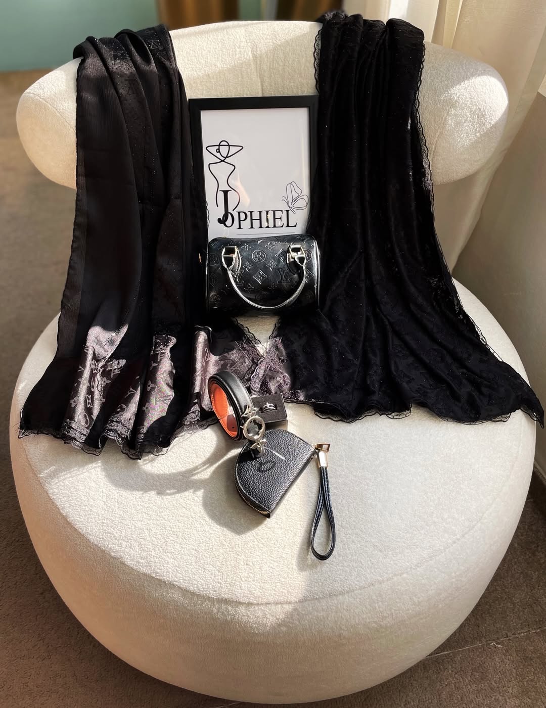 شال مجلسی لویی ویتون طرح برجسته مخملی لبه دانتل